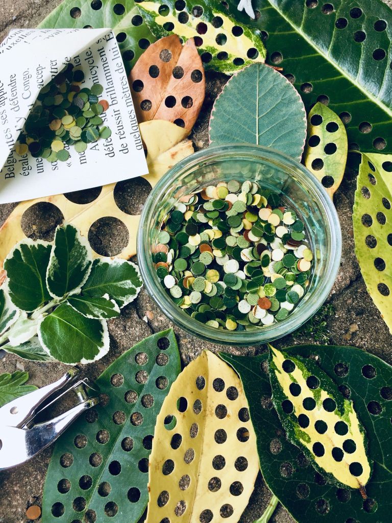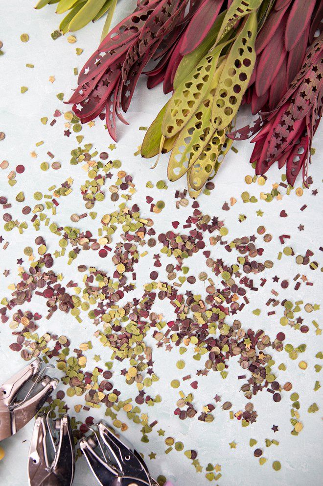 If you’re feeling a bit more creative or want some decoration for your room, try leaf confetti. Grab a hole punch with whatever shape you desire, and start gathering some leaves. This is super fun, cute, and biodegradable!